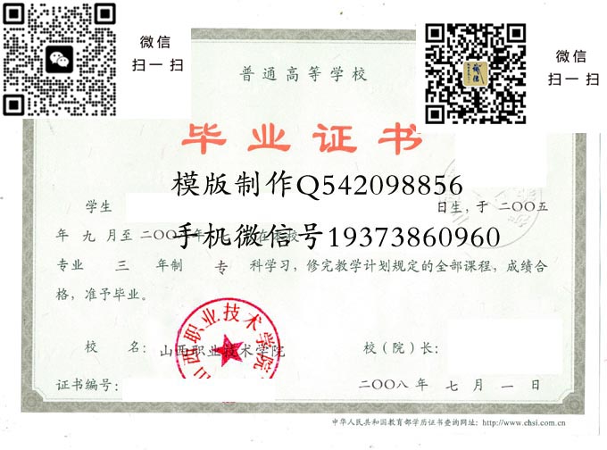 山西职业技术学院本科毕业证样本、山西职业技术学院大专毕业证样本、山西职业技术学院自考毕业证样本、山西职业技术学院成人毕业证样本、山西职业技术学院学士学位样本。库存全国普通高等院校:1991年、1992年、1993年、1994年、1995年、1996年、1997年、1998年、1999年、2000年、2001年、2002年、2003年、2004年、2005年、2006年、2007年、2008年、2009年、2010年、2011年、2012年、2013年、2014年学籍档案、本科、大专、自考、研究生、学士学、硕士、博士等大学毕业证样本!