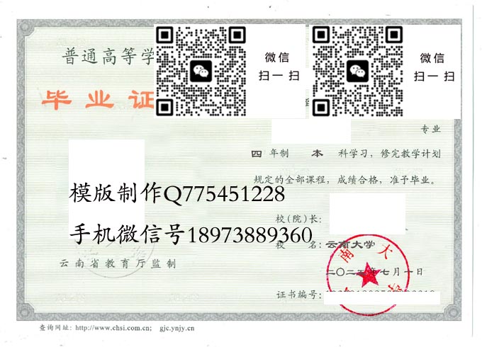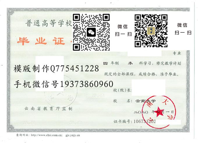 云南省高等院校国标代码毕业证样本大全