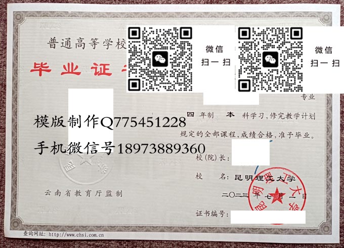 昆明理工大学本科毕业证样本