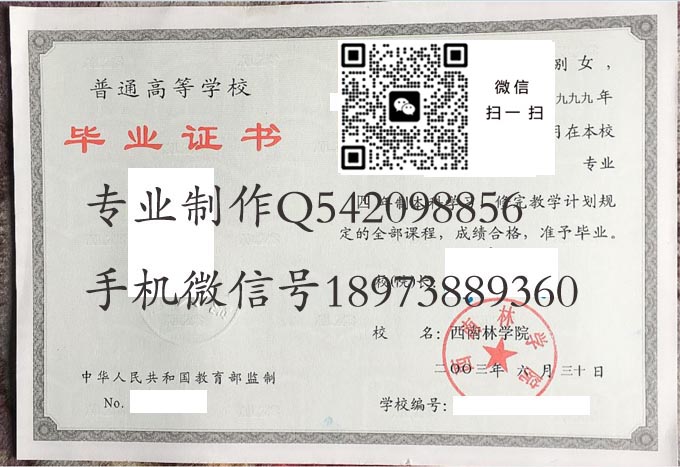 西南林业大学本科毕业证样本