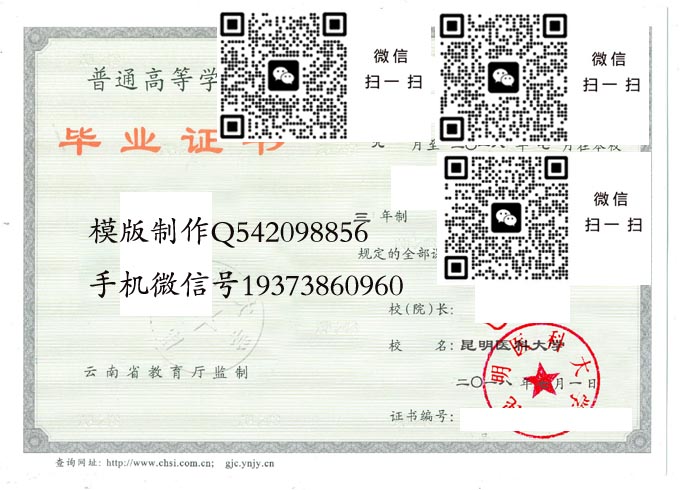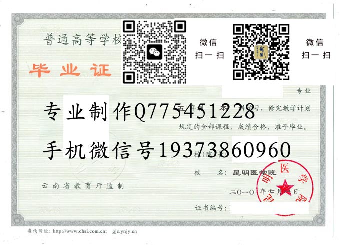 昆明医科大学本科毕业证样本