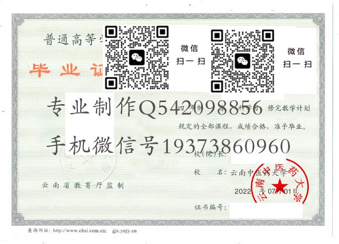 云南省高等院校国标代码毕业证样本大全
