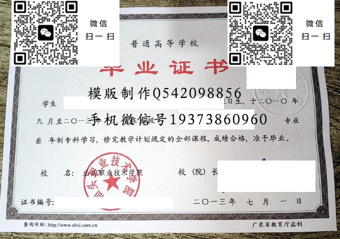 汕头职业技术学院历年毕业证样本