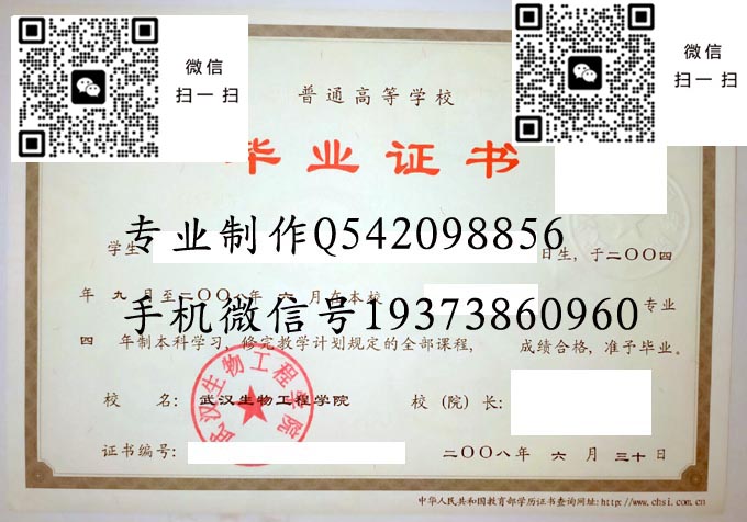 武汉生物工程学院本科毕业证样本、武汉生物工程学院研究生毕业证样本、武汉生物工程学院硕士毕业证样本、武汉生物工程学院大专毕业证样本、武汉生物工程学院自考毕业证样本、武汉生物工程学院成人毕业证样本、武汉生物工程学院学士学位样本。库存全国普通高等院校:1991年、1992年、1993年、1994年、1995年、1996年、1997年、1998年、1999年、2000年、2001年、2002年、2003年、2004年、2005年、2006年、2007年、2008年、2009年、2010年、2011年、2012年、2013年、2014年、、、等学籍档案、本科、大专、自考、研究生、学士学、硕士、博士等大学毕业证样本!
