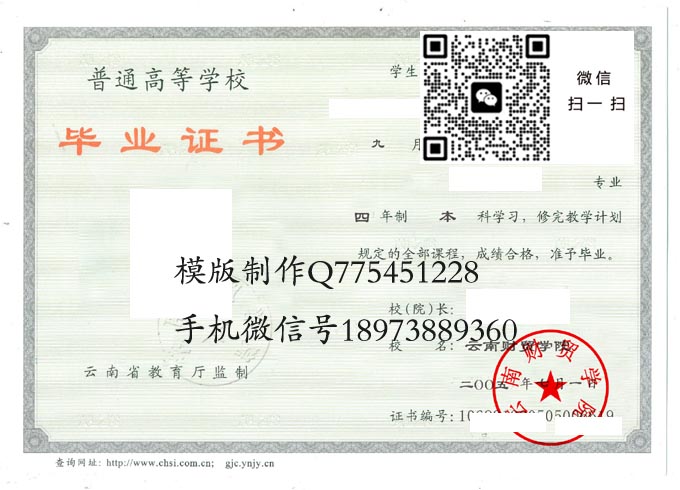 云南省高等院校国标代码毕业证样本大全