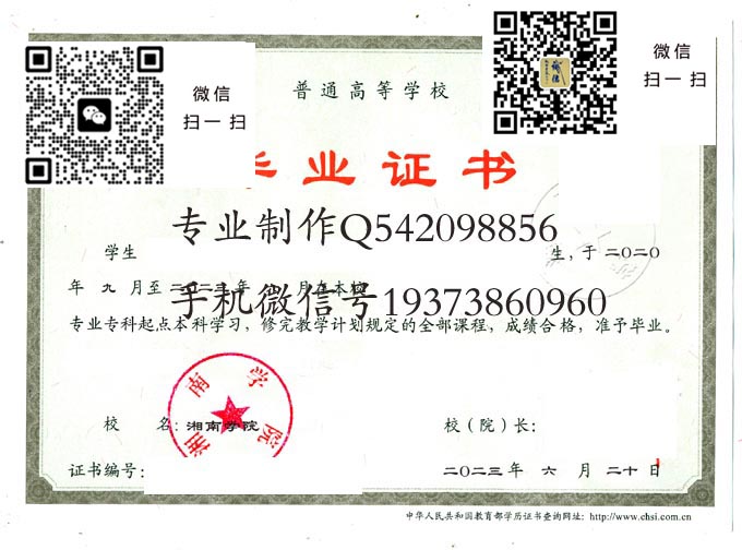 湘南学院毕业证样本