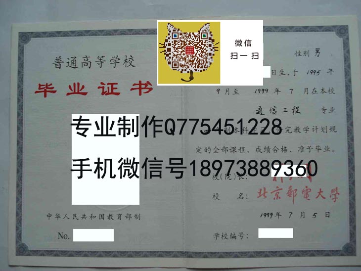 北京邮电大学99年毕业证样本