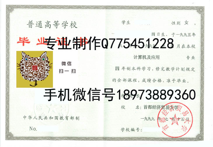 首都经济贸易大学99年毕业证样本