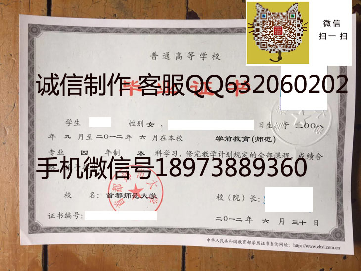 首都师范大学2012年毕业证样本