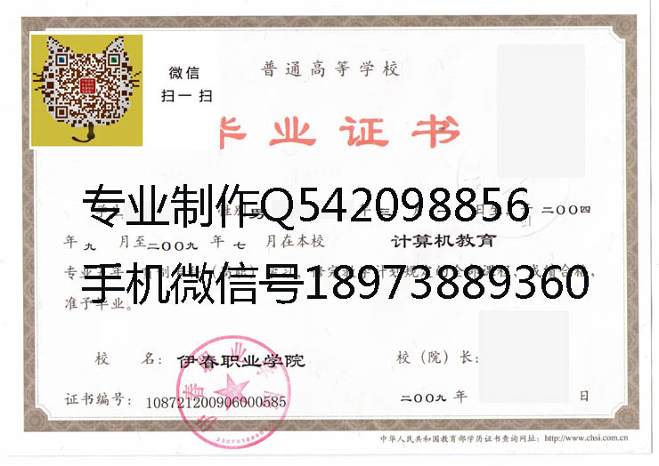 伊春职业学院毕业证样本