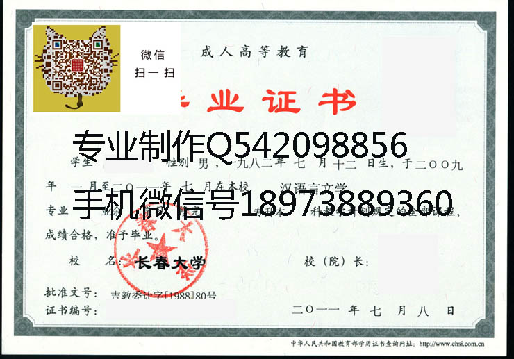 长春大学毕业证样本