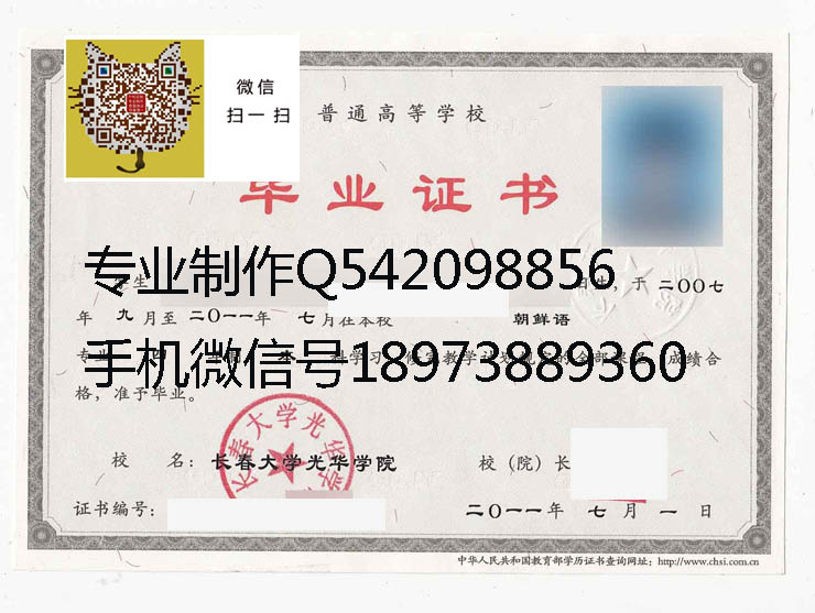 长春大学光华学院毕业证样本