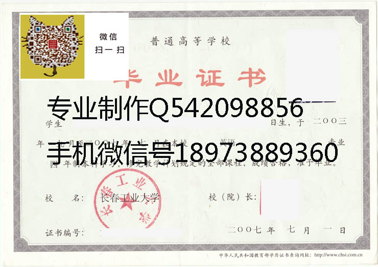 长春工业大学毕业证样本