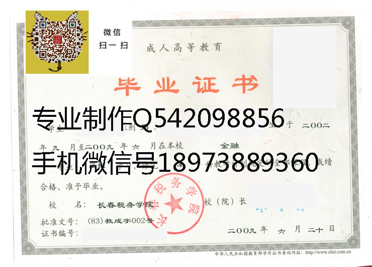 长春税务学院毕业证样本