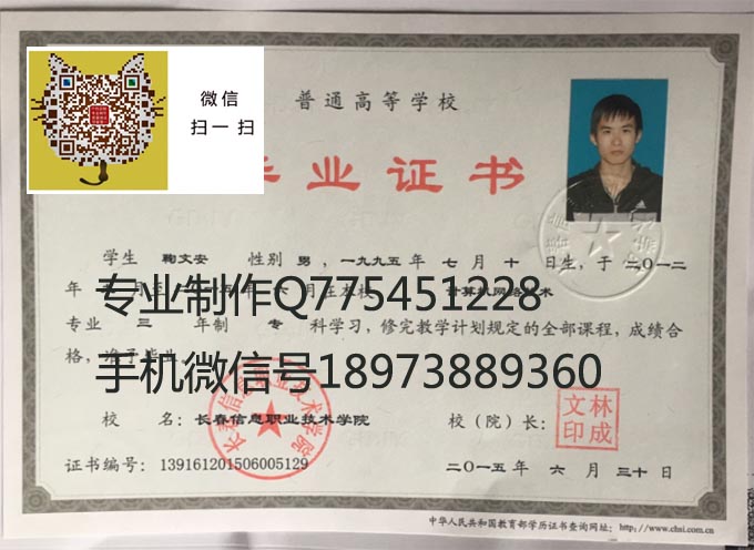 长春信息职业技术学院毕业证样本
