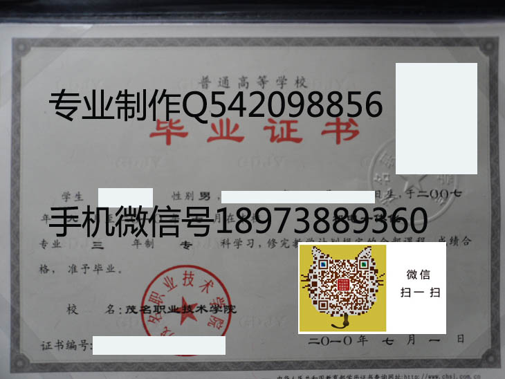 茂名职业技术学院毕业证样本