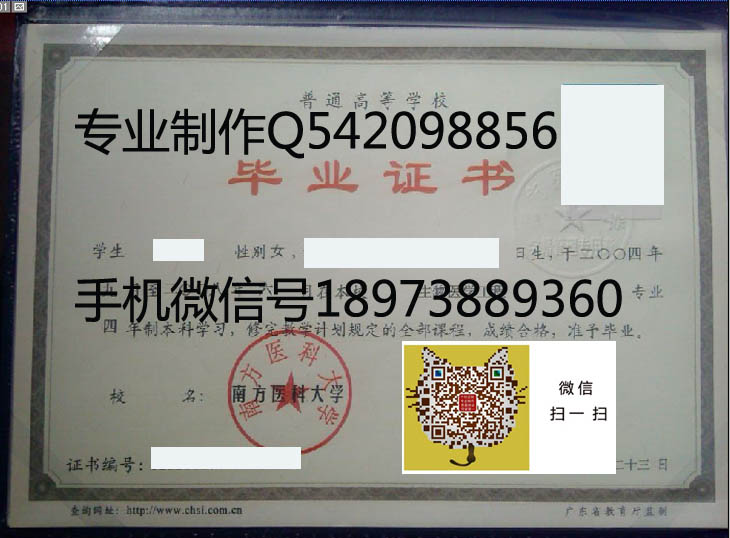 南方医科大学毕业证样本