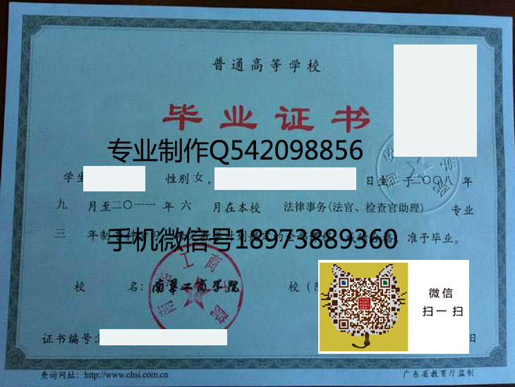 南华工商学院毕业证样本
