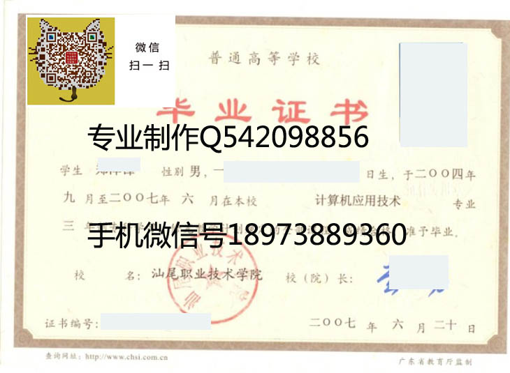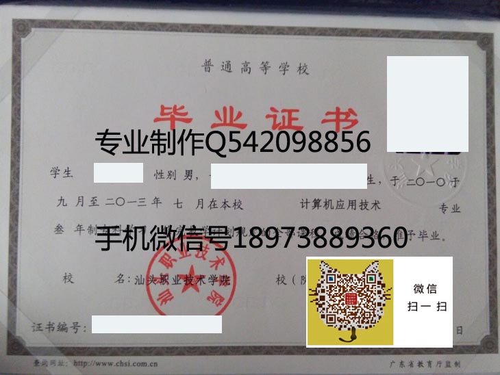 汕头职业技术学院毕业证样本