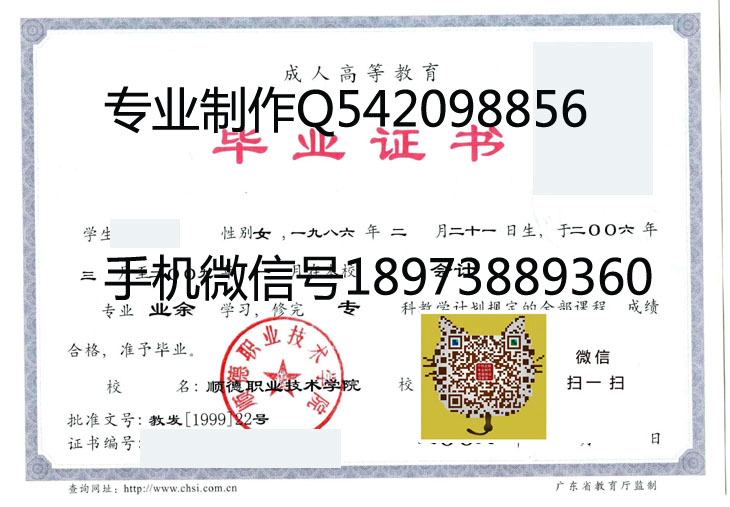 顺德职业技术学院毕业证样本