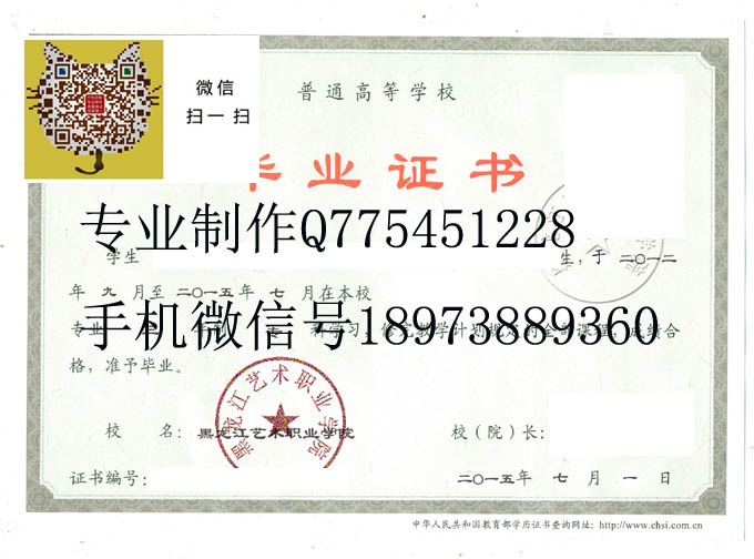 黑龙江艺术职业学院2015年毕业证样本