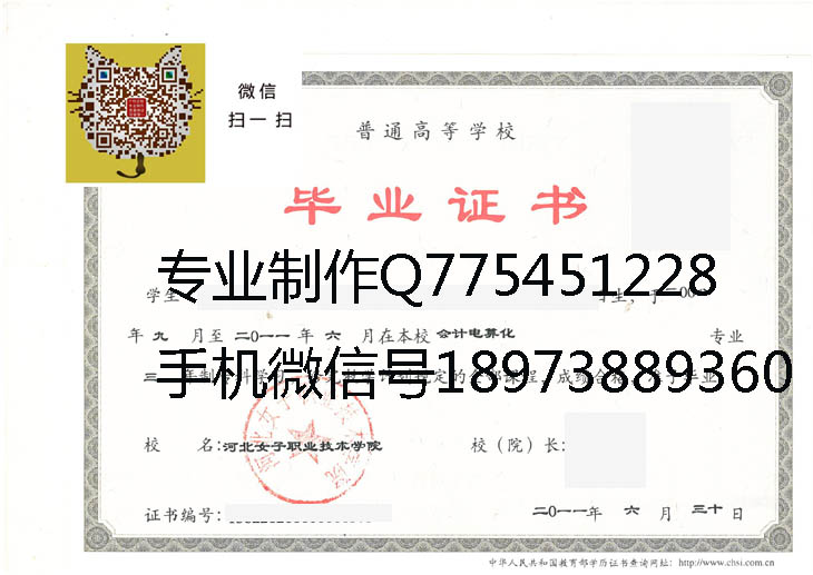 河北女子职业技术学院2011年毕业证样本
