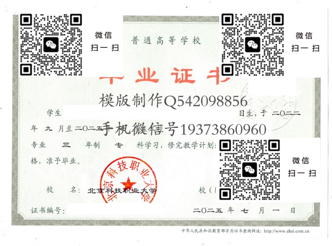 北京科技职业大学2025年毕业证的核心信息包括学生姓名、性别、出生年月、学习时间、所学专业、毕业院校、毕业时间及证书编号等基础内容。与传统本科毕业证相比,其特色在于: