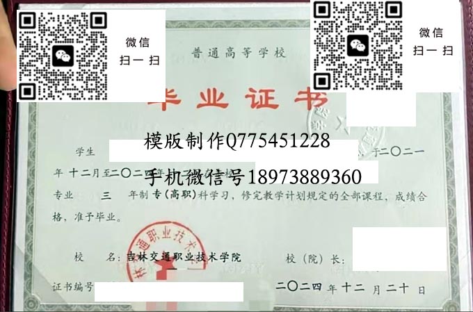 2024年毕业证书采用深红色封面,印有学院名称“吉林交通职业技术学院”及校徽,整体设计庄重、大方。内页使用专用水印纸,边框防复印纹案由“GAO DENG JIAO YU ZHENG SHU”缩微字母组成,防伪浮雕底纹则由高等教育的第一个字母“GDJY”构成。证书下方设有无色荧光油墨防伪线,需在紫外线下验证,进一步增强防伪效果。