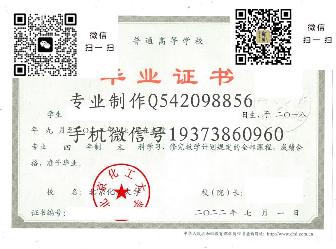 北京化工大学毕业证样本(北京化工大学2022年全日制模版图片收藏)
