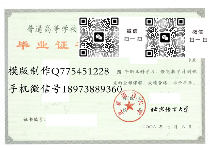 北京语言大学毕业证样本(北京语言大学2006年全日制模版图片收藏)
