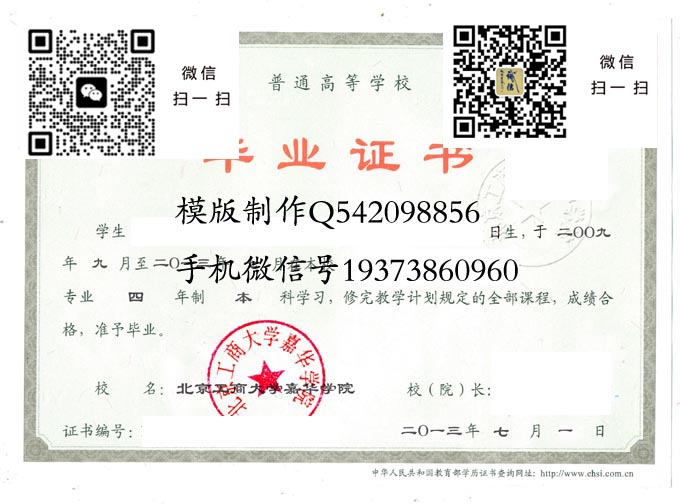 北京工商大学嘉华学院毕业证样本(北京工商大学嘉华学院2013年全日制模版图片收藏)