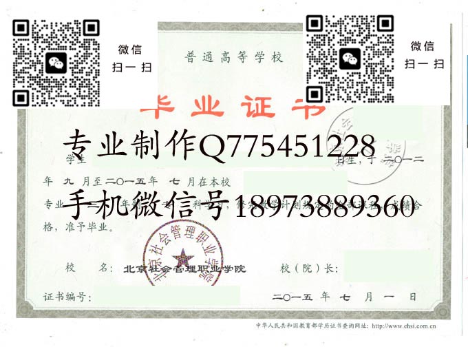 北京社会管理职业学院毕业证样本(北京社会管理职业学院2015年全日制模版图片收藏)