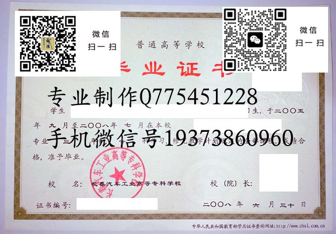 长春汽车工业高等专科学校2008年毕业证样本