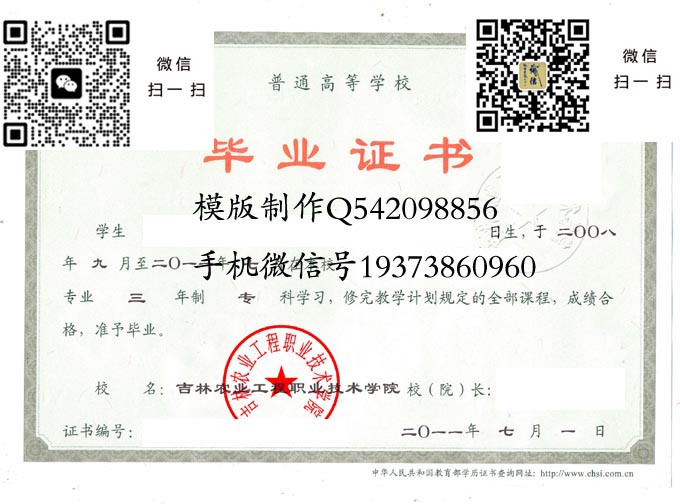 吉林农业工程职业技术学院毕业证样本(吉林农业工程职业技术学院2011年全日制模版图片收藏)