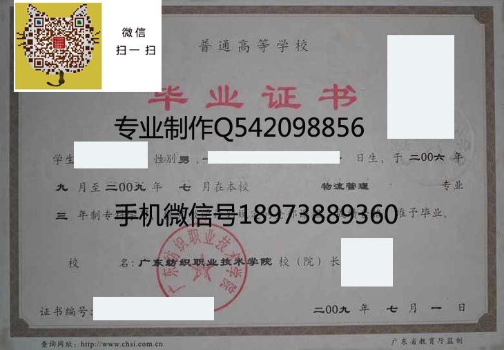 广东纺织职业技术学院毕业证样本