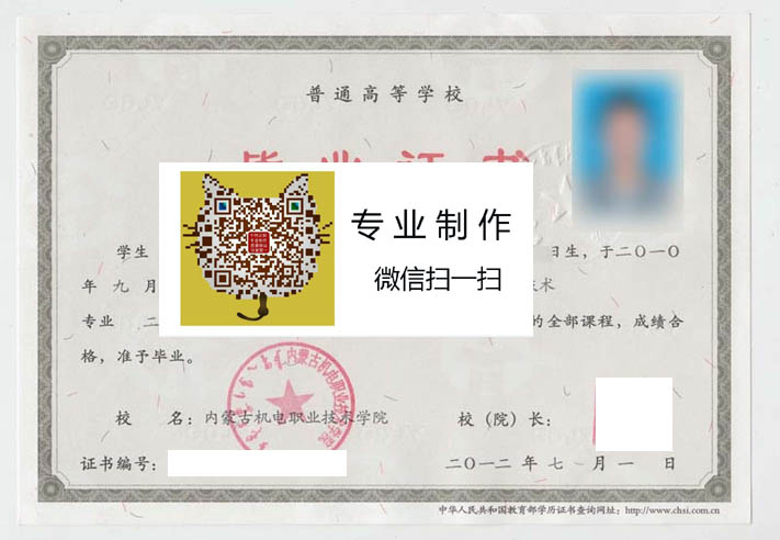 内蒙古机电职业技术学院毕业证样本