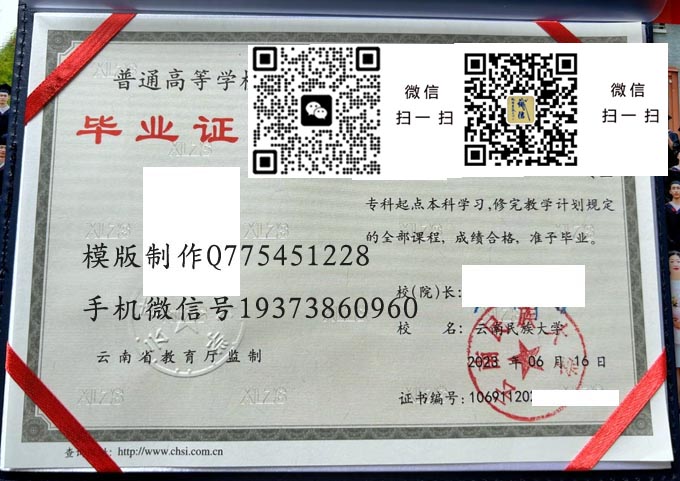 云南民族大学本科毕业证样本