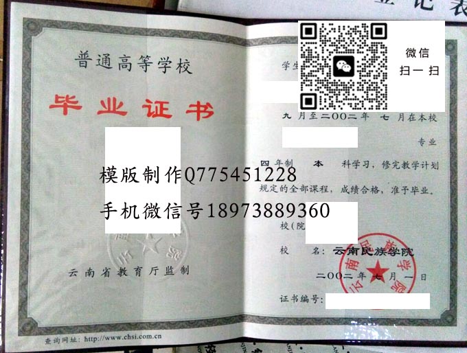 云南省高等院校国标代码毕业证样本大全