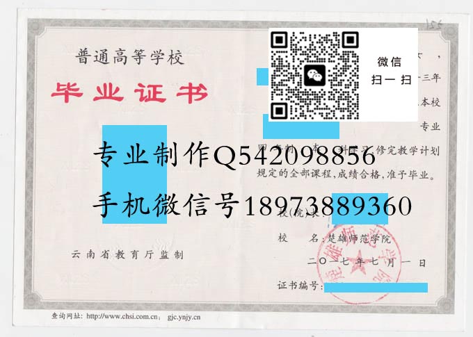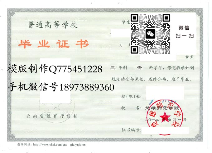 楚雄师范学院毕业证样本