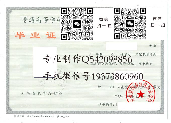 云南省高等院校国标代码毕业证样本大全