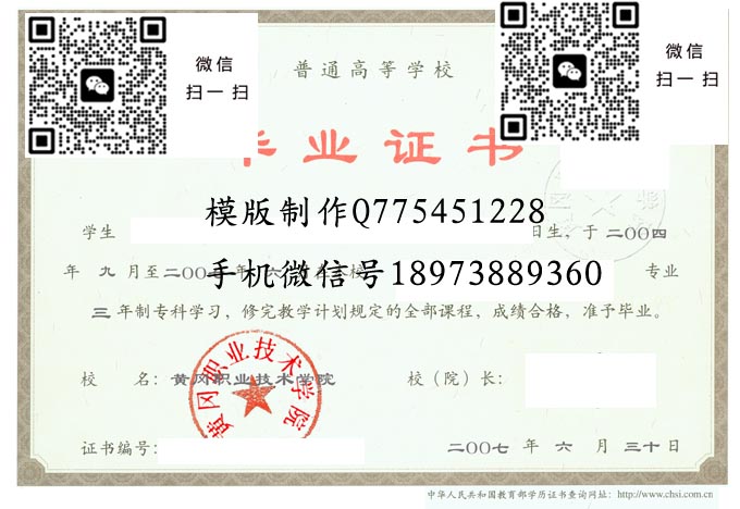 黄冈职业技术学院本科毕业证样本、黄冈职业技术学院研究生毕业证样本、黄冈职业技术学院硕士毕业证样本、黄冈职业技术学院大专毕业证样本、黄冈职业技术学院自考毕业证样本、黄冈职业技术学院成人毕业证样本、黄冈职业技术学院学士学位样本。库存全国普通高等院校:1991年、1992年、1993年、1994年、1995年、1996年、1997年、1998年、1999年、2000年、2001年、2002年、2003年、2004年、2005年、2006年、2007年、2008年、2009年、2010年、2011年、2012年、2013年、2014年、、、等学籍档案、本科、大专、自考、研究生、学士学、硕士、博士等大学毕业证样本!