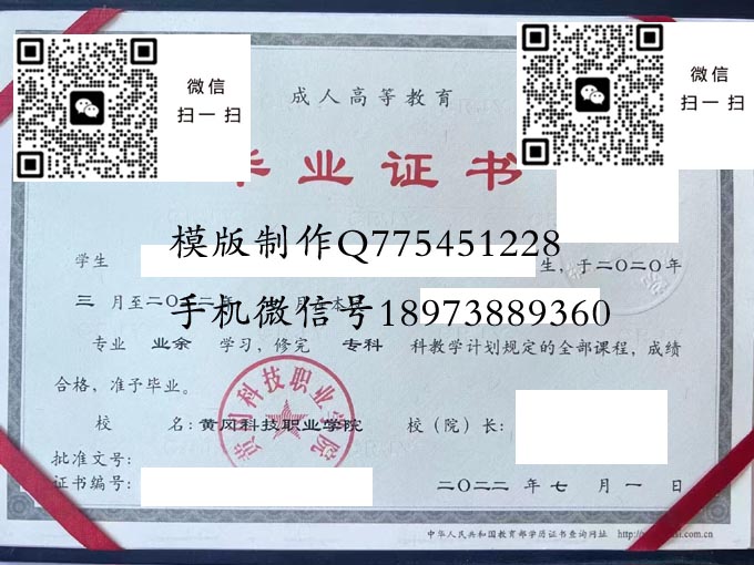 黄冈科技职业学院历年毕业证样本