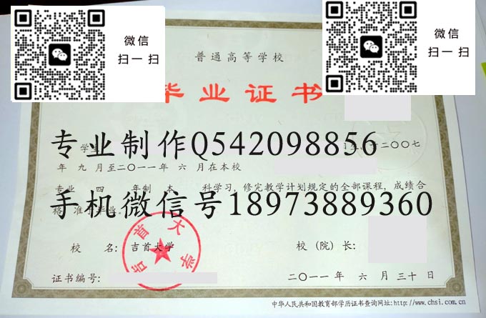 吉首大学历年毕业证样本
